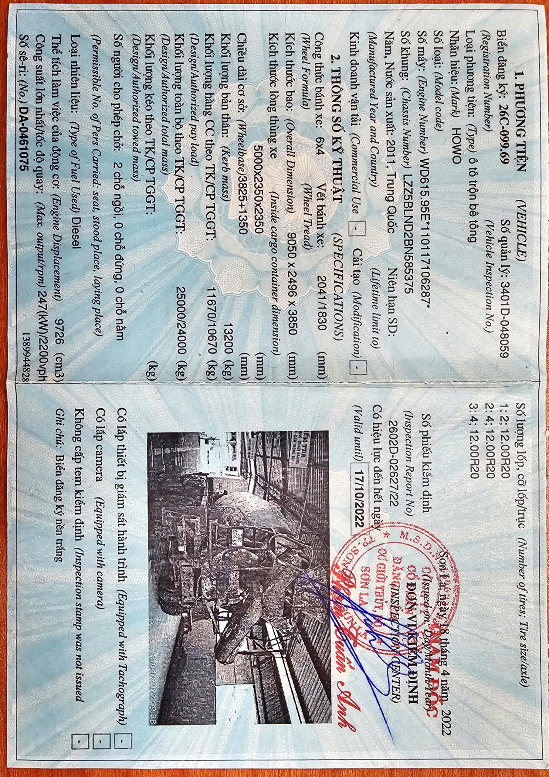 | 2 | Tài sản thứ hai: Xe trộn bê tông HOWO mang biển kiểm soát 26C-099.69: